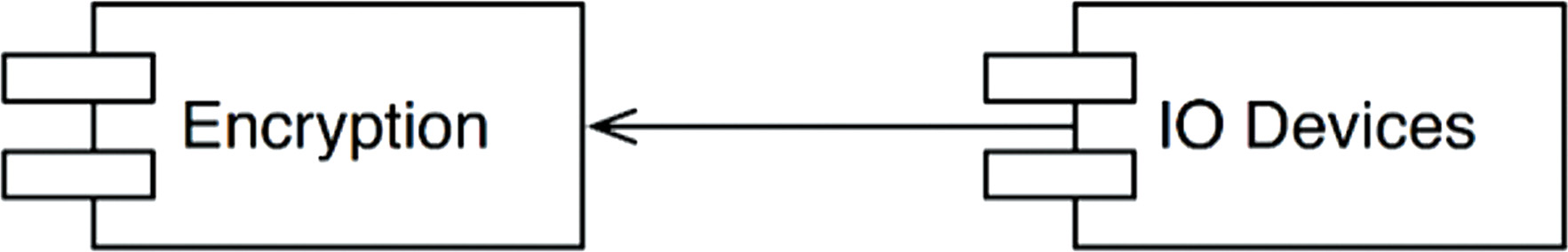 从另一个角度来说,低层组件应该成为高层组件的插件。图 19.3 中的组件图展示了这种关系,我们可以看到 Encryption 组件对 IODevices 组件的情况一无所知,而 IODevices 组件则依赖于 Encryption 组件。